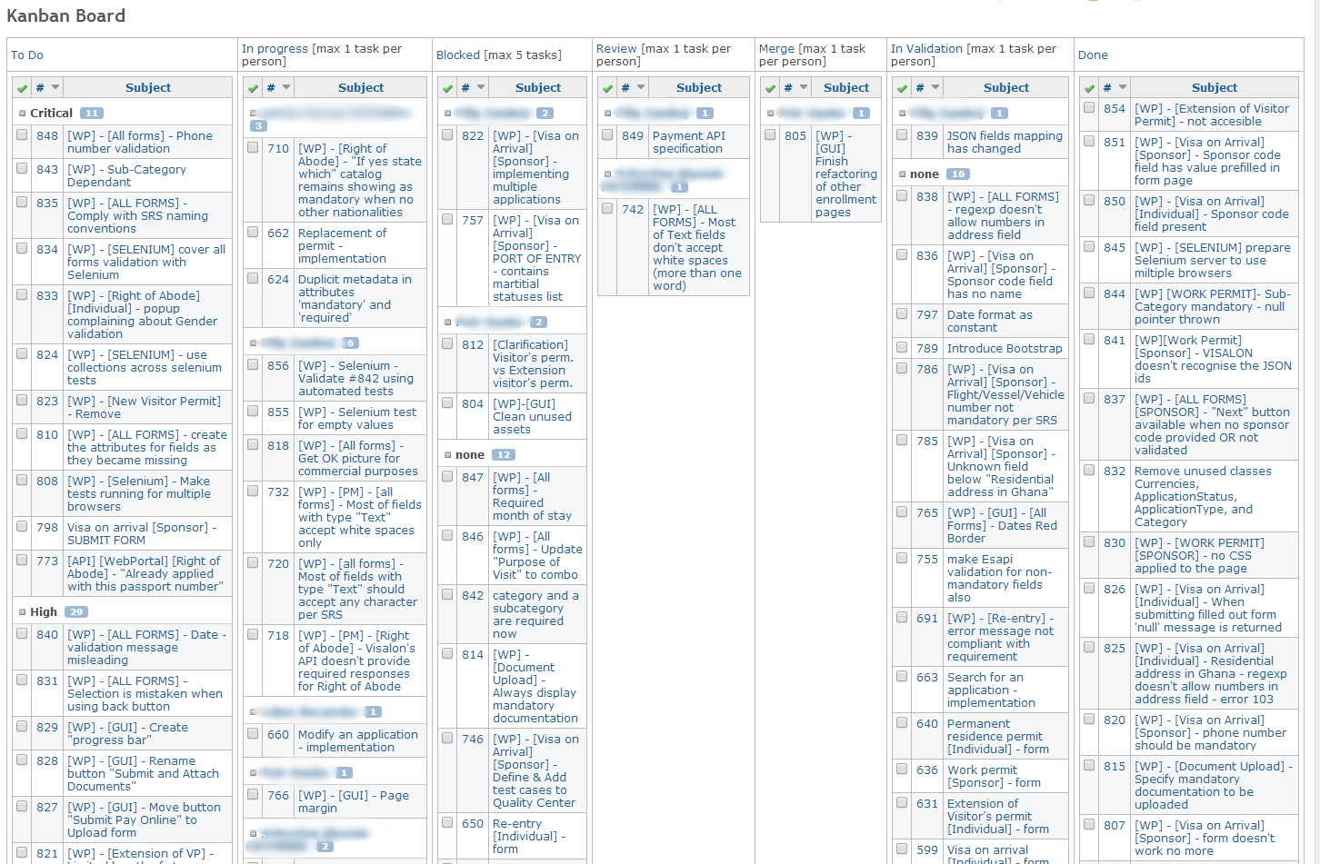 Další výhodou elektronického boardu je jeho provázanost s ITS. Kanban board pak bývá “pouhým” snapshotem, pohledem na tasky. Tzn. že odpadá duplikování informace a synchronizace v ITS a na fyzickém boardu.