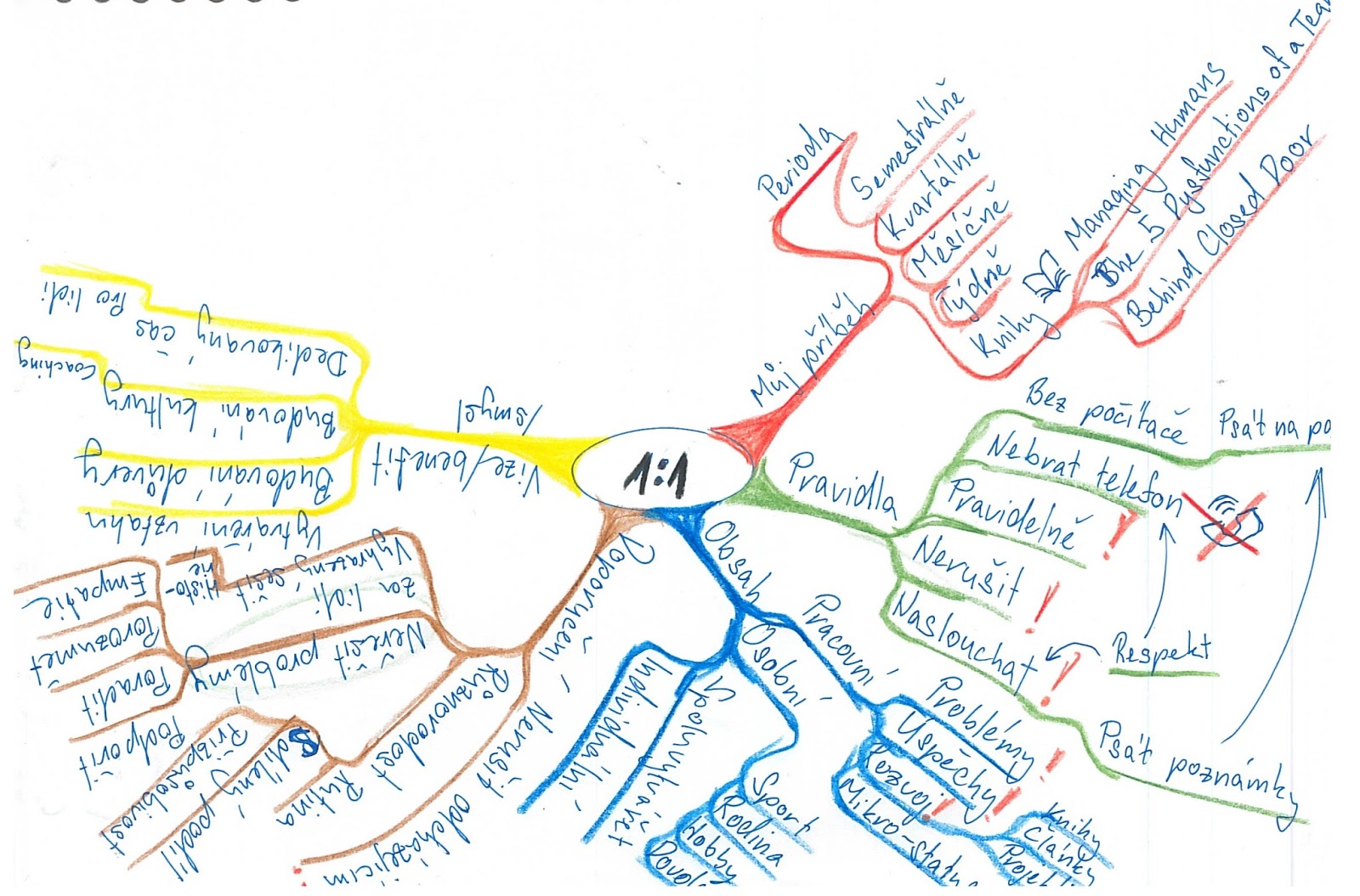 - 1:1 je také nástroj na vytváření a ovlivňování týmové kultury.